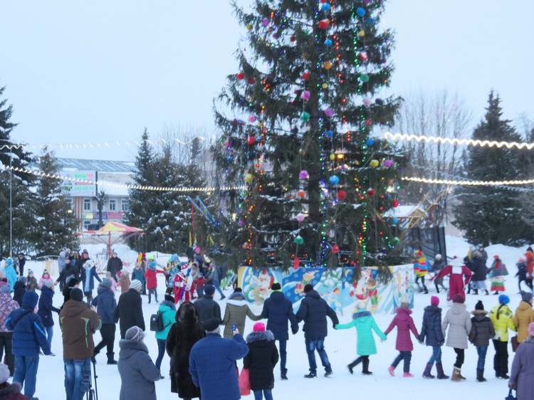 В заключение праздника Деды зажгли главную елку города и устроили около нее большой хоровод.