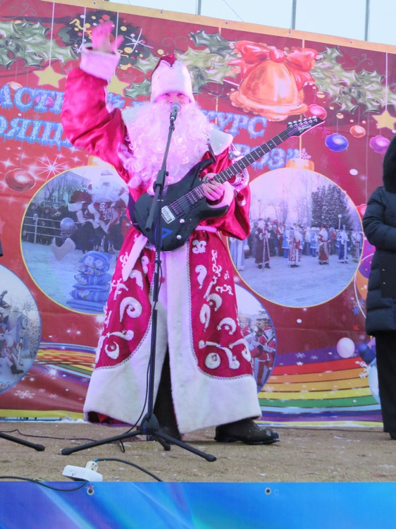 А чтобы выявить победителя в конкурсе «Волшебник», Деды устроили диско-баттл – большой хоровод и танцы. Особенно вдохновил на танцы Дед Мороз Ивановского района, имитирующий на сцене игру на электрогитаре. Он же и стал победителем этого этапа.