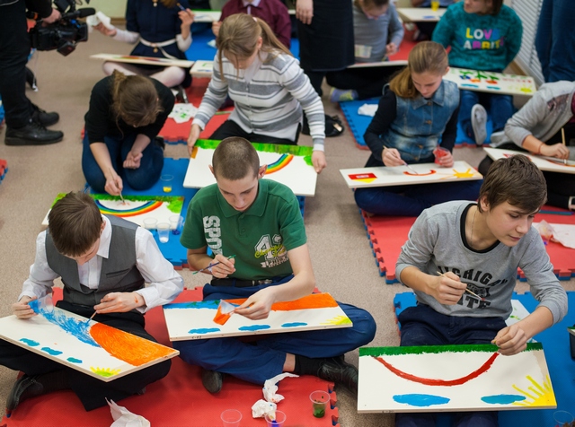 Воспитанники ивановской школы-интерната для глухих и слабослышащих детей № 1 еще совсем юны, но их рисунки (а многие ребята рисовали не только радугу) полны смысла. Глядя на то, с каким старанием они выводили акриловыми красками на красочных деревянных панелях свою, непохожую на другие радугу, невольно поддаешься магии момента и начинаешь верить в чудо.