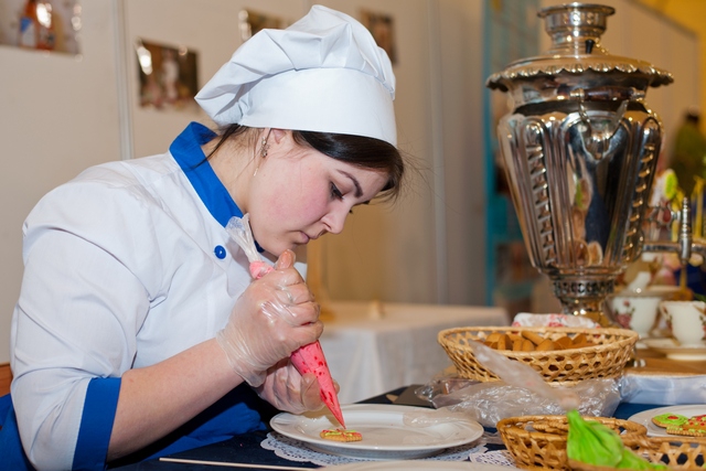 Каждое учебное заведение проводило мастер-класс. К примеру, первокурсница Анастасия Грачёва из Кохомского индустриального колледжа расписывала глазурью пряники. У нее мама – повар. А для оформления своей экспозиции учащиеся привезли в Иваново даже самовар. Второкурсницы из Ивановского колледжа легкой промышленности делали эскиз рисунка по ткани. Девушки – будущие художники по ткани. Первокурсницы Ивановского медучилища учили гостей выставки… пеленать ребенка. Естественно, на макете.