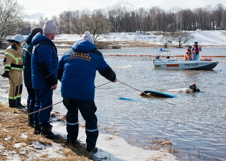 Кульминацией учений стало еще одно происшествие: проезжающая вдоль реки легковушка неожиданно влетела в воду и затонула. Аварийно-спасательные работы проводили бойцы областного поисково-спасательного отряда и пожарной части № 13. Шуйский водолаз Владимир Грачёв спустился под воду и вытащил водителя. «Ладу» краном подняли на берег, разрезали корпус специальными ножницами и извлекли пассажира, которого тут же забрала «Скорая помощь». (Уточним, что с ролью водителя и пассажира отлично справились манекены).