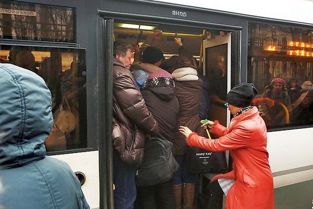 Пассажиры штурмовали наземный транспорт.