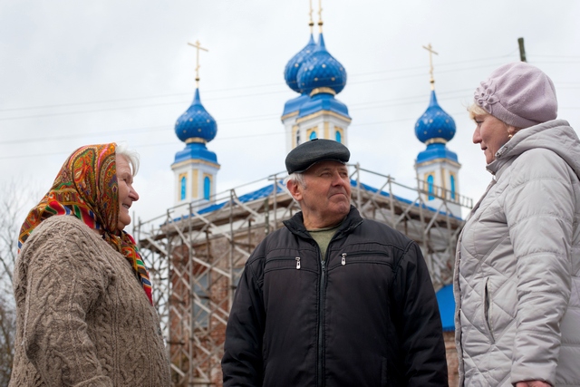 «Два года назад мы начали ремонтировать наш сельский храм, – продолжает разговор пенсионер Николай Беляев. – Нашелся меценат, который просил не называть своего имени. Крышу на его деньги сделали, купола покрасили, кресты теперь золотом покрыты. Окна новые вставили. И первый организатор субботников на храме – наша глава. Она – местная, мы ее знаем девчонкой». «Наша глава выводит бюджетников и на благоустройство кладбища, площадок у воинских памятников: сама метлу берет, а за ними и мы тянемся», – говорила перед нашим отъездом из села еще одна активистка группы по возрождению храма – Валентина Федосеева.