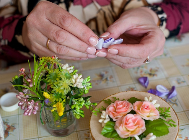 Когда пришло осознание того, что большую часть жизни ей придется провести дома, в инвалидном кресле, когда женщине стало не хватать общения, она искала разные пути к творчеству: вязала, шила… Много времени проводила в Интернете, где и наткнулась на мастер-класс по флористике. Необычный вид творчества ее заинтересовал, и Ольга Владимировна решила попробовать.