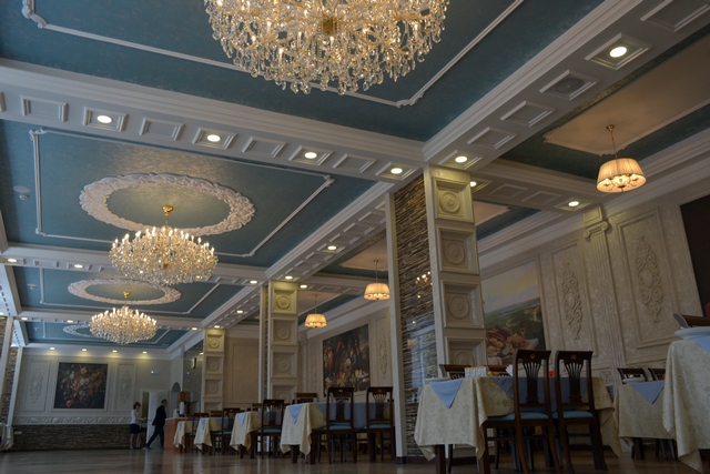 После заседания в торжественной обстановке открыли преобразившийся, некогда неказистый, «советского дизайна» обеденный зал. До этого полностью обновили зал по соседству – «Альпийский». Теперь это интерьеры в стиле швейцарского шале: деревянные балки, каминный уголок с коваными люстрами, уютными диванами и майоликой, декоративные панно из флорентийской штукатурки и пейзажи заснеженных Альп. Новый же роскошный зал недаром решено было назвать «Жемчужным»: хрустальные люстры, копии изящных старых натюрмортов голландских мастеров, лепнина – сразу видно, что работал хороший дизайнер интерьеров. И всё это – исключительно за счет собственных средств…
