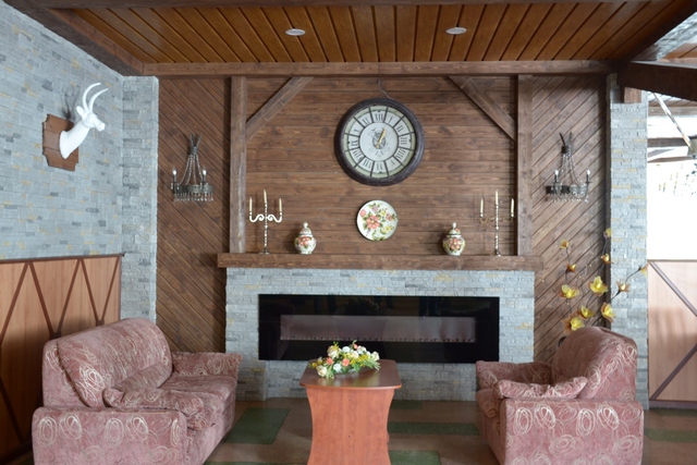 «Альпийский» зал встречает отдыхающих уютным камином.