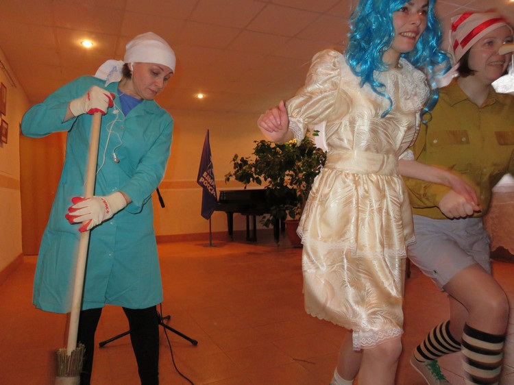 Лейтмотивом проходила тема Библионочи этого года – «Новое прочтение». В начале разыграли забавную постановку: Буратино, Мальвина, Коровьев-Фагот и… Анна Каренина торопились ночью в библиотеку, и им пришлось долго объяснять Уборщице, зачем они туда идут.