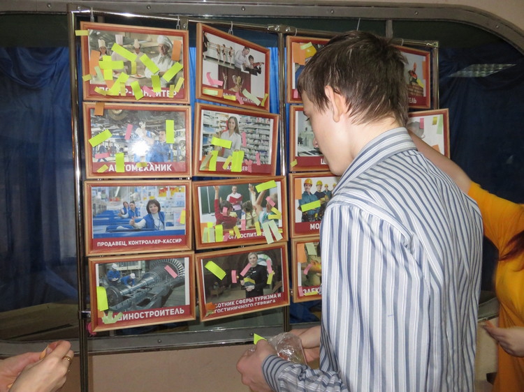 В заключение методом интерактивного голосования (прикрепление стикеров к фото со специальностями на стенде) определили самую понравившуюся профессию. Оказалось, что это – повар-кондитер.