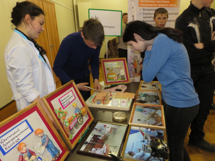 Одной из самых заманчивых была специальность повара-кондитера, которую можно получить в Родниках. Преподаватели и студенты приготовили множество вкусных и оригинально оформленных блюд: салат в сундучке из буханки, блины с начинкой, завязанные в мешочки... Студенты-технологи общественного питания научили определять некачественную сметану. Оказывается, надо просто покапать на нее йодом: цвет индикатора изменился – значит, сметана плохая. Те, кто осваивает специальность контролера-кассира, показывали, как работать на кассовом аппарате. Будущие электромонтеры из этого же колледжа демонстрировали собранный ими «Умный дом»: набираешь смс-сообщение – и в доме даже на большом расстоянии включаются электроприборы… Свое мастерство показали и будущие строители-отделочники, швеи, закройщики.