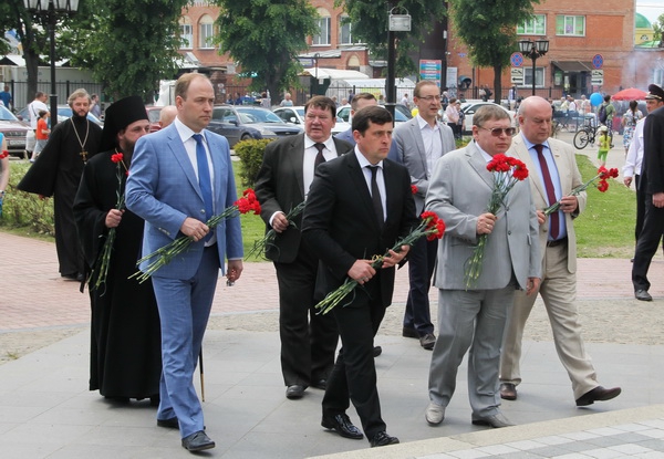 Павел Коньков посетил торгово-развлекательную ярмарку на Шуйском Арбате. Глава региона, епископ Шуйский и Тейковский Матфей, депутаты, руководство города возложили цветы к памятнику пострадавшим за веру у Воскресенского собора.