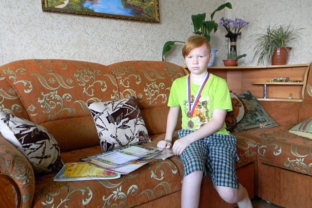 Мальчик хорошо учится, у него множество увлечений. Он отлично ездит на лыжах, побеждает в шахматных турнирах. У него и времени-то свободного почти нет: помогает по хозяйству маме, одной воспитывающей троих детей, бабушке и деду.