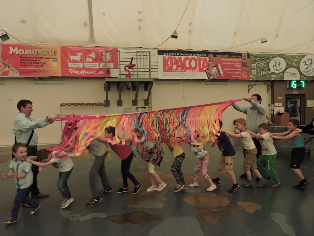 Одна из аниматорских придумок - «Ветер желаний» - представляла собой яркие колышущиеся полоски, под которыми дети пробегали и поодиночке, и паровозиком. В этот момент нужно было загадать желание. И вряд ли ребята в этот моент думали о диабете. Желания у всех самые обычные: дружба, счастье, будущее.