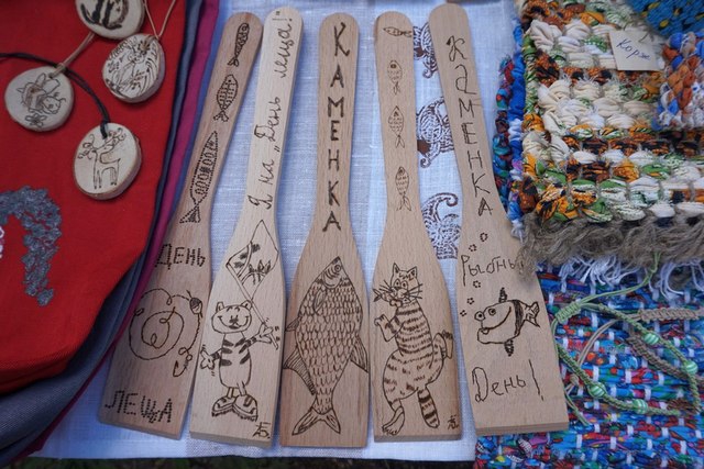 «Год назад мы начали выезжать на различные фестивали, которые проводятся в нашей области, и поняли, как это здорово, – рассказывает руководитель «Граней» Светлана Зелинская. – Постепенно стали вливаться в мероприятия событийного календаря, предлагать не только изделия для продажи, но и новые мастер-классы, которые проводят ребята и их родители». С энтузиазмом занялись и производством сувениров. Сначала это были тканые вещи, а в мае этого года освоили новый вид деятельности – выжигание по дереву.