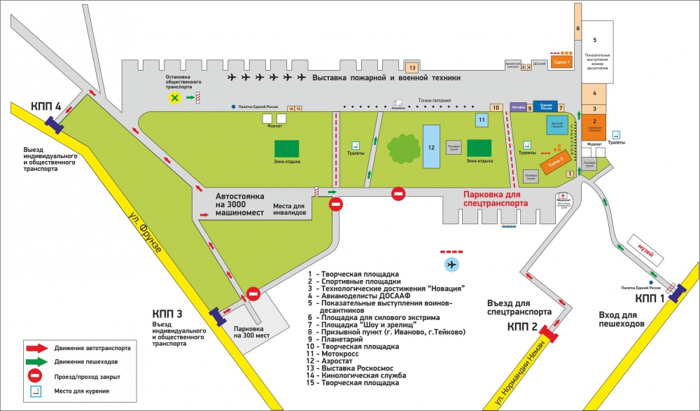 7. Площадка ДОСААФ (9.00-18.00): арбалетный, пневматический и пейнтбольный тиры, укладка парашютов, сборка/разборка макета автомата АК; армейские будни