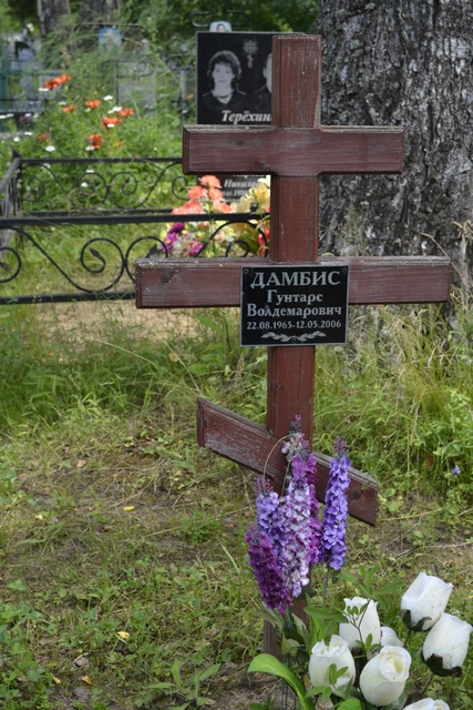 За могилой Гунтарса Дамбиса ухаживает бывшая жена Наталья.