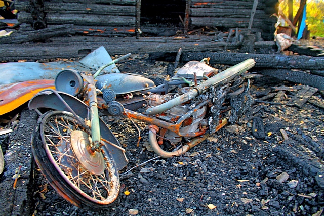 Пожарные приехали быстро, на двух машинах, но от дома остались лишь обугленные стены… Кроме имущества, сгорели мотоцикл и мопед, хозпостройки. Придется восстанавливать документы.