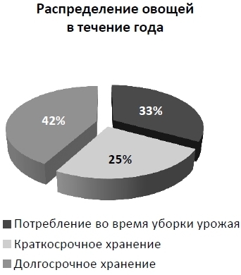 | Путь овощей к прилавку Потребление картофеля и моркови покупателями делится на три вида: во время уборки урожая, после краткосрочного и долгосрочного хранения. Овощи, которые хранятся под навесом в утепленных ящиках и контейнерах, не портятся в течение трех месяцев после урожая. Долгосрочное хранение – в хранилищах с вентиляцией и регулируемым температурным режимом – позволяет обойтись почти без потерь девять месяцев (к июню спасает 95% урожая).