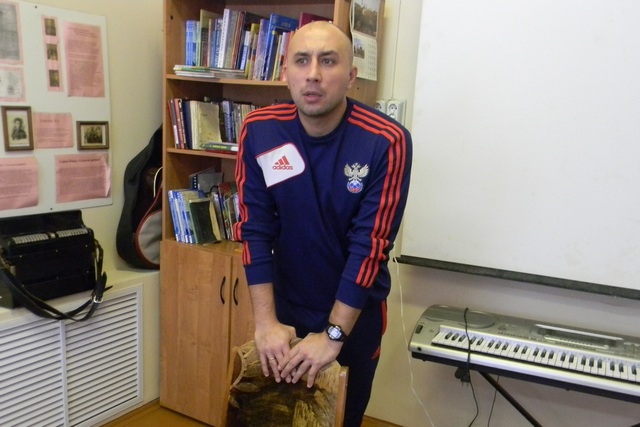 Сергей Валерьевич – уроженец здешних мест, работает в школе 28 лет после окончания истфака ИвГУ. Преподает не только историю, обществознание, но и технологию, музыку (закончил музыкальную школу), ведет краеведческий и поисковый кружки.