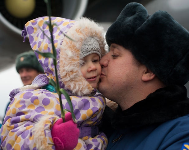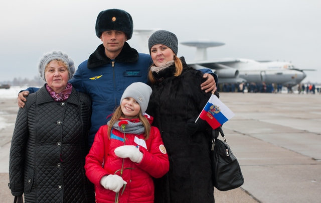 Летные экипажи и технический состав выполнили специальное задание в составе группировки российских военно-космических сил в Сирийской Арабской республике. Перед прилетом А- 50 с «тарелкой» и ИЛ-76, который доставил технический состав, обслуживающий самолет-разведчик на Северном аэродроме в холодный день их уже ждали воины учебного центра, участвовавшие в парадном построении, журналисты центральных и региональных СМИ. И…семьи.