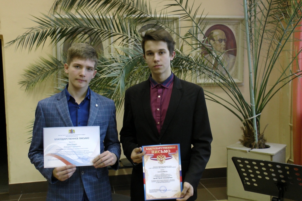 В Татьянин день наградили лучших учащихся колледжа: Дмитрий Никотин и Сергей Орлов получили благодарственные письма департаментов образования и молодежной политики и спорта Ивановской области