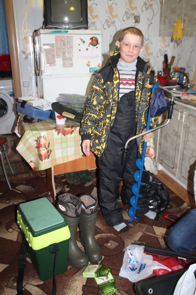 И вот он, момент чуда! Гости достают подарки: два десятка удочек – летних и зимних, с кивочками и балансировкой, спиннинг, воблеры, набор лесок, блесны, мормышки, коробочки, большой набор крючков, ящик для рыболова и, наконец, главный приз – спортивный ледобур! А потом мальчик примерил полукомбинезон, куртку и рыбацкие сапоги (они рассчитаны аж до минус 40 градусов). «Мама, смотри, термос!» - юный рыбак не сдерживает эмоций, крепко обнимает гостей, благодарит. А Владимиру Басову в ответ подарил карманную энциклопедию рыболова.
