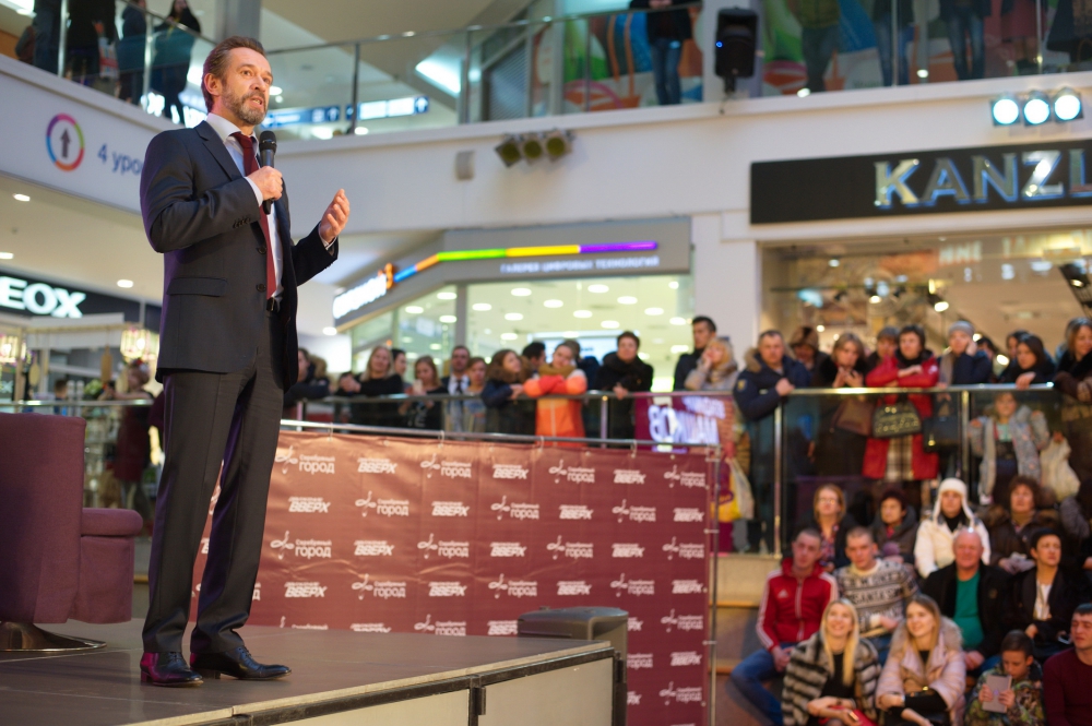 В ТЦ «Серебряный город» основной темой встречи ивновцев с актером стало обсуждение фильма «Движение вверх». Владимир Машков рассказал, что команда фильма не ожидала такого успеха: «Мы получили невероятный душевный отклик зрителей. Для меня очень почетная работа – создать образ великого тренера, которого знают и любят многие».