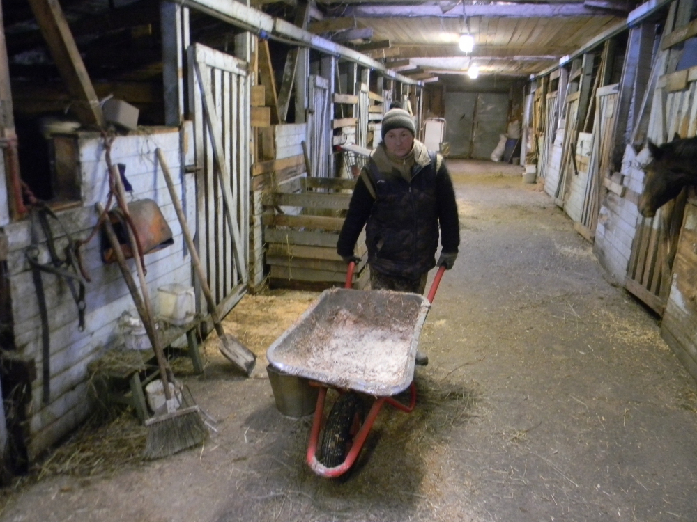 У каждой лошадки - автопоилка. Но в целом помещение, соединенное с коровником, за которым ухаживает Елена, жена Николая, производит неэлитарное впечатление и пока напоминает старую колхозную конюшню. Временную постройку.