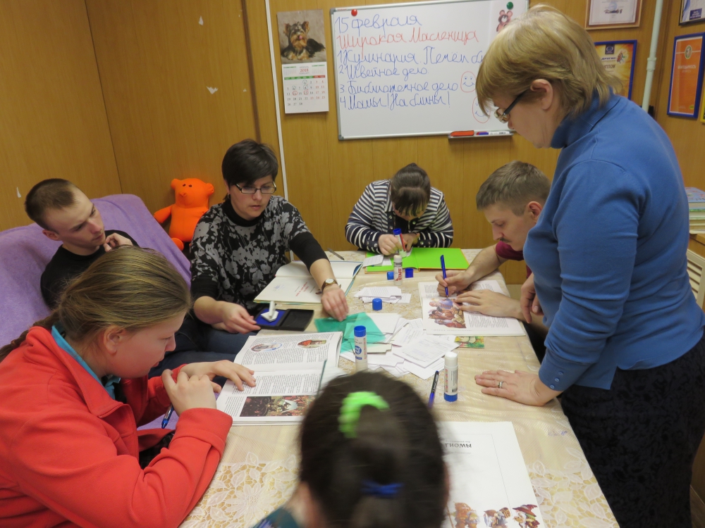 «Одна из родителей-волонтеров Анна Богачёва предложила мне поработать с ребятами, - рассказывает главный библиотекарь ивановской Центральной детской библиотеки Надежда Ломакина. – Поначалу мне было страшно, я сомневалась в своих силах… Но родители сказали: «Относитесь к ребятам, как к обычным людям». Сейчас я чувствую, что нужна им». На занятиях Надежда Геннадьевна учит, как оформлять формуляры, поясняет, что означает номер на книге (в каком разделе и на какой полке ее искать)… Конечно, это начальные знания библиотечного дела, но, возможно, в будущем они обеспечат занятость кому-то из ребят.