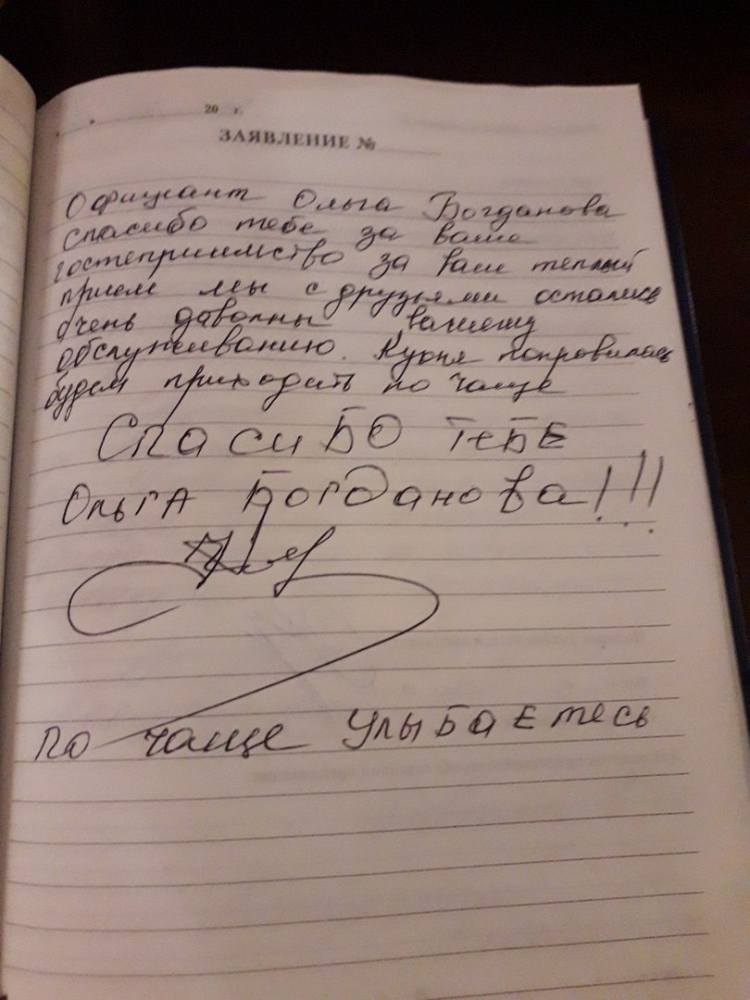 Радует то, что в ивановских жалобных книгах преобладают положительные записи: благодарности за обслуживание, за невысокие цены и акции, полезные советы… Впрочем, как уверяют сами работники сферы обслуживания, книгу жалоб просят принести нечасто: молодые к примеру, чаще всего оставляют отзывы в соцсетях или официальных сайтах, а пар предпочитают спускать прямо на глазах продавцов.