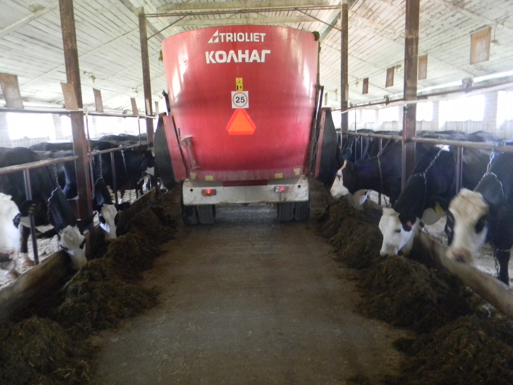 Летом коровам на подпённовскую ферму корма привозит трактор с миксером-измельчителем