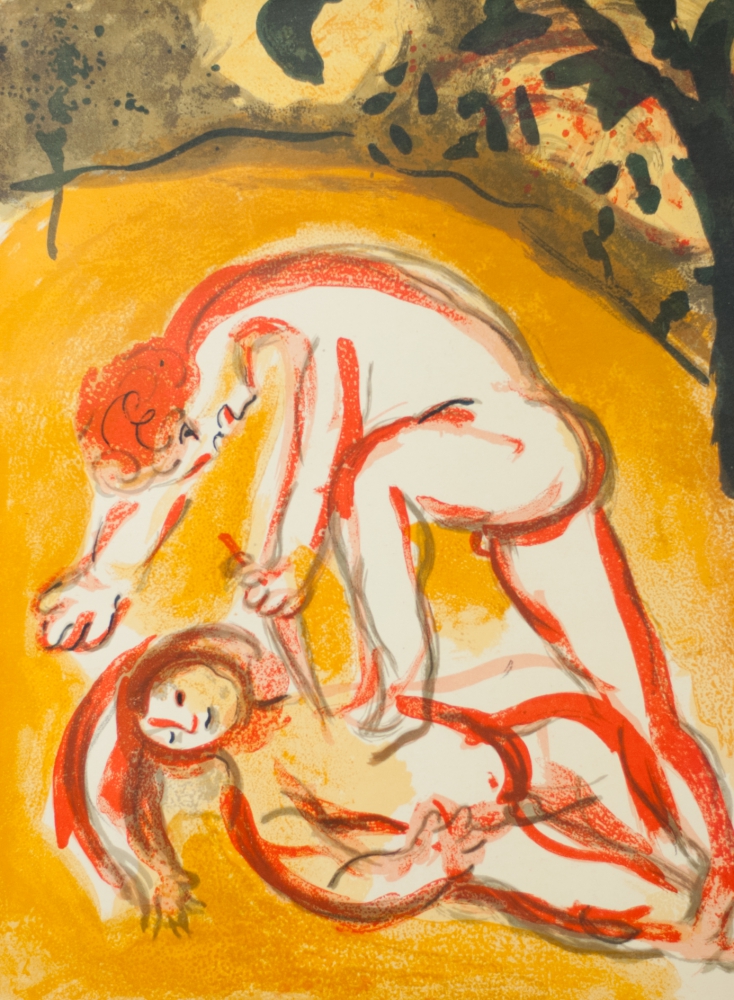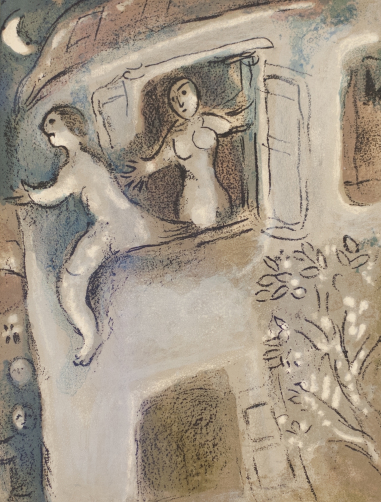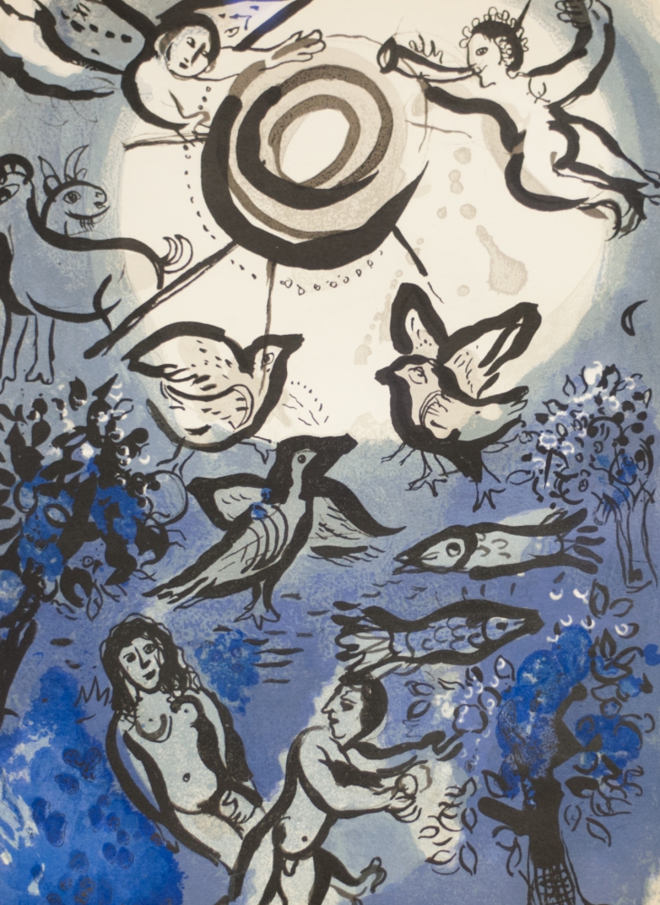 Здесь есть и его первые иллюстрации, которые появились после путешествий по святым местам Ветхого завета в 30-е годы прошлого века. В каждом рисунке - «подлинная библейская эпичность» и в то же время образы, знакомые автору с детства. «Я не хочу быть похожим на всех остальных, я хочу увидеть новый мир», — говорил Шагал.