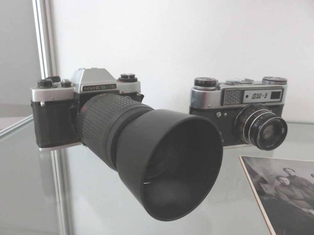 На выставке их представлено более 70. Здесь и огромная павильонная камера позапрошлого века, и маленький «Киев» 1960-1970 годов, напоминающий небольшой пенал.