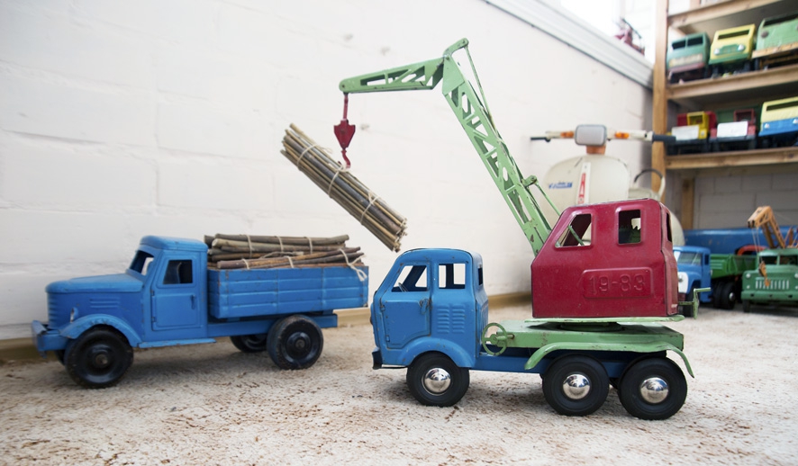 «Всё началось с того, что в деревне у бабушки я нашел старые вещи: угольные самовар и утюг, прялку, патефон, керосиновую лампу. И починил их, – рассказывает мастер золотые руки. – Потом стал ходить по соседям и интересоваться старыми вещами. Среди них попадались и советские игрушки. Я с детства любил массивные машинки. Они были пределом моих мечтаний. А тут пошел на рынок и купил большой игрушечный грузовик. Восстановил его, покрасил – и машинка стала как новая».