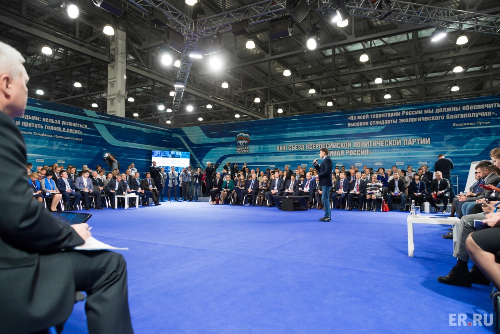 В первый день съезда была организована работа трех дискуссионных площадок – «Обновление», «Открытость» и «Лидерство», на которых подводились итоги региональных предсъездовских дискуссий «Обновление –2018».