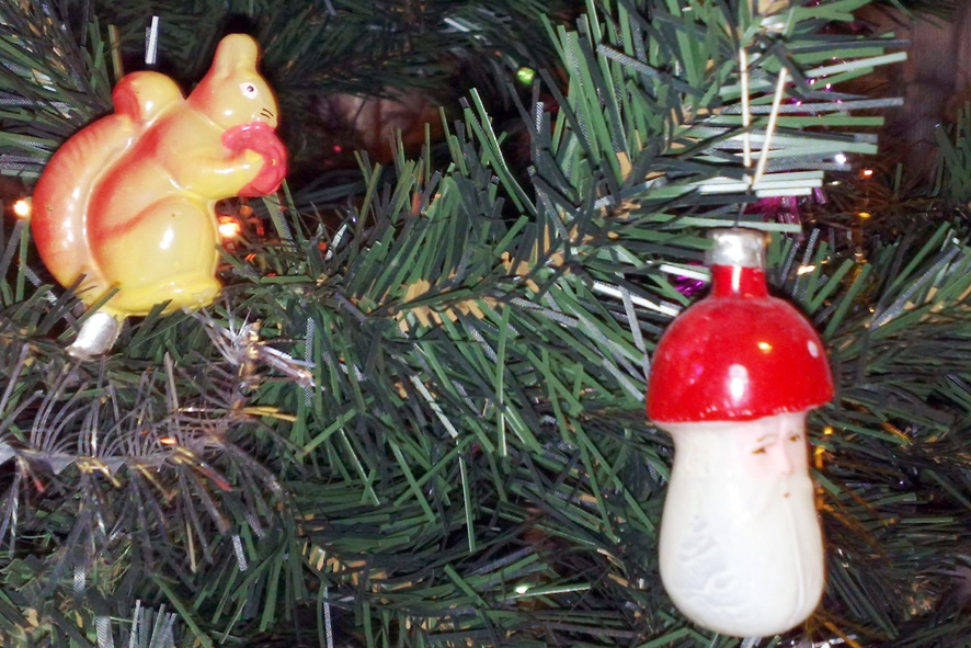 «В мирном 1949 году, к юбилею Александра Пушкина, была создана серия персонажей его сказок. В моей коллекции есть Старик с неводом, который ловит Золотую рыбку, Царевна-Лебедь и Белочка из «Сказки о царе Салтане» – эти игрушки достались мне еще от бабушки. Но в основном коллекцию начал собирать мой папа – жили мы тогда в Челябинске. В год моего рождения вышел всенародно любимый фильм «Карнавальная ночь» и появились стеклянные шары в виде будильников и музыкальных инструментов. И так на нашей елке с тех пор красуются часики, стрелки на которых показывают без пяти двенадцать». Эти часики для Ирины Константиновны теперь главный атрибут, без которого невозможно представить красавицу-елку.