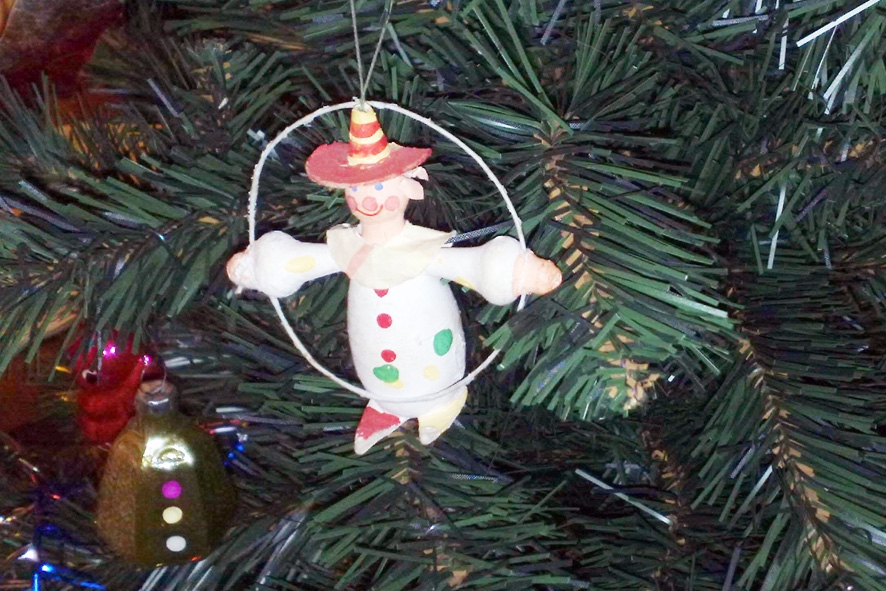 «У нас в семейной коллекции есть и ватные игрушки – такие в нашей стране изготавливали до середины 1950х. Их мастерили из прессованного хлопка, которому придавали нужную форму, – Ирина Тимофеева интересуется и технологией производства елочных украшений. – Существовали специальные каркасы для человечков и животных. Например, клоунов и медведей. Раскрашенную фигурку покрывали крахмальным клейстером со слюдой, что придавало им жесткость. Лица кукол и мордочки животных лепили из глины, папье-маше, шили из ткани».