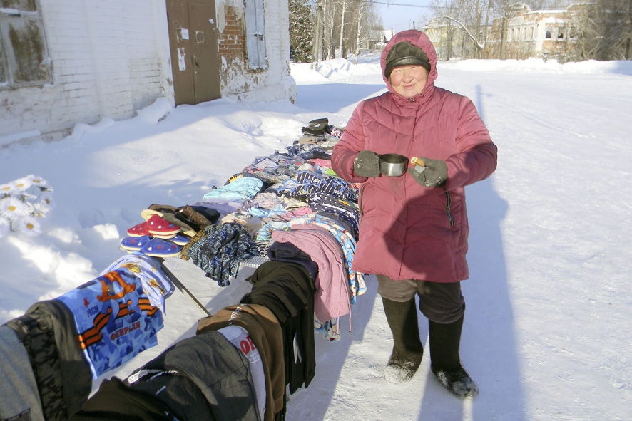 Разговорился с торгующей на развале пенсионеркой Анной Мощеевой. Мороз ей нипочем. Бабушка рассказала, что в газификации села участвовал лесокомбинат. Но тогда не все жители смогли найти средства на подводку трубы к дому и на газовое оборудование. К примеру, подошедшая к нам 84летняя Анна Лапшина, чуть не плача, поведала, как до сих пор мучается с дровами.