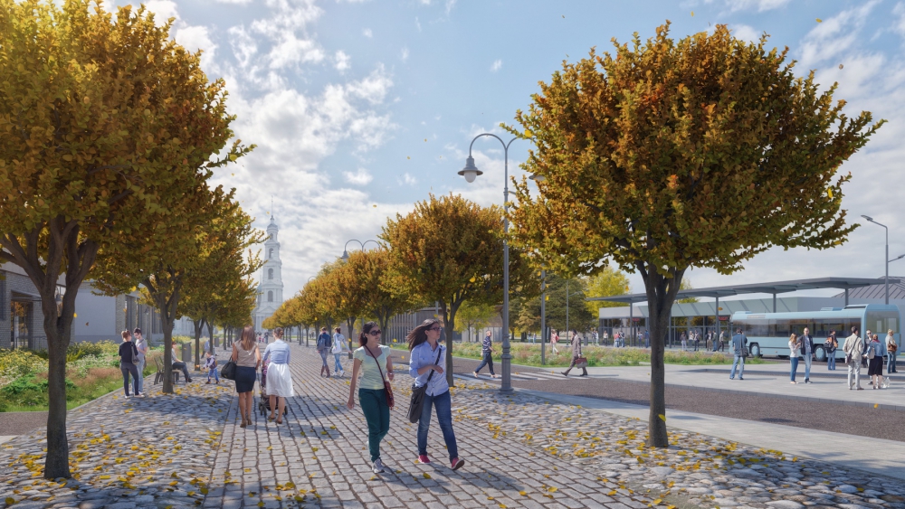 Территория перед автостанцией сохранит свой функционал, но здесь появится больше зелени и незначительно поменяется схема движения. Проектом благоустройства, предложенным КБ «Стрелка», также предусмотрено преображение сквера памяти народного единства. Сегодня, по мнению горожан, он почти не задействован: люди идут через него к автостанции. Специалистами КБ «Стрелка» предложено установить здесь новый павильон и организовать места для отдыха с созданием детской площадки.