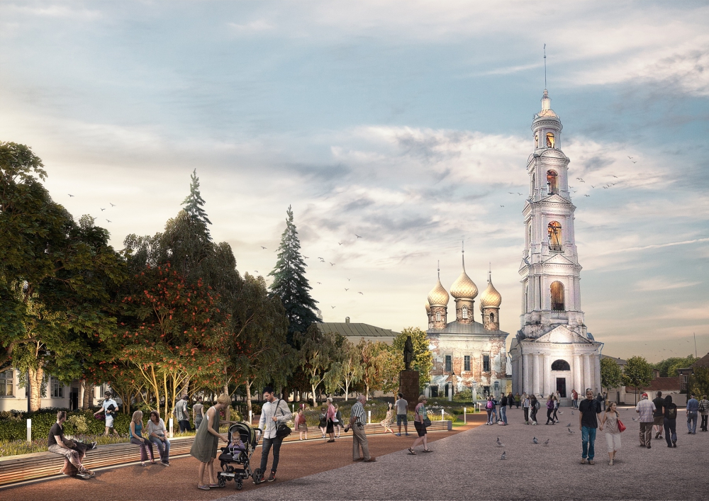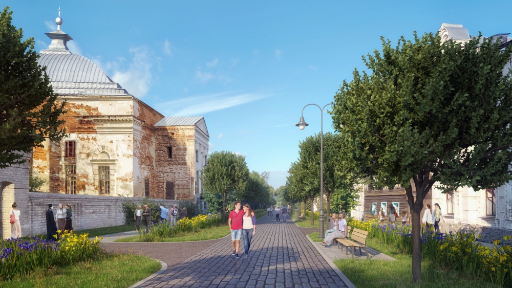 Историческую часть города объединила Георгиевская и Базарная площади, улица Советская, сквер памяти народного единства, территория у автостанции и набережная. На Георгиевской площади предусмотрено создание нового сквера, имитирующего утраченную Георгиевскую гору, а также установка новой стационарной сцены для проведения мероприятий. Эта территория должна превратиться в комфортное общегородское пространство, стать местом притяжения людей, удобной площадкой для проведения общегородских праздников различного масштаба. Прилегающую к Георгиевской площади улицу Советскую предлагается сделать главным променадом города с местами отдыха. На Базарной площади – главной торговой площадке города – предлагается сохранить и отреставрировать имеющийся павильон, а также установить новый. Это, по мнению специалистов КБ «Стрелка», позволит возродить исторический облик площади.