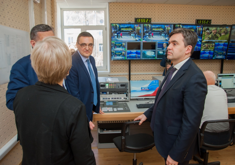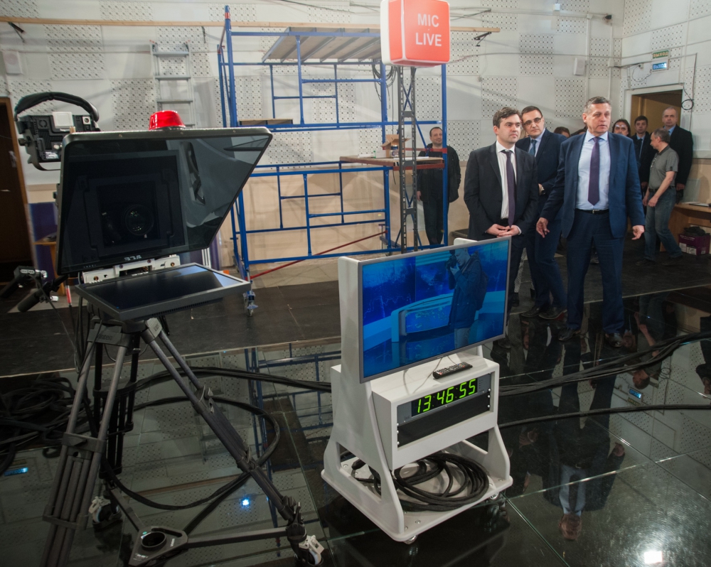 Перед первым прямым эфиром из нового аппаратно-студийного комплекса Станислав Воскресенский и Рифат Сабитов осмотрели новую студию и аппаратные. По словам директора ГТРК «Ивтелерадио» Евгения Судибора, студия – трансформер, здесь можно записывать телевизионные передачи любого формата. Полностью заменено световое и звуковое оборудование, установлены видеокамеры, позволяющие снимать картинку высокой четкости и транслировать широкоформатное изображение. Впервые в истории телеканала смонтирована видеостена, на которую можно выводить любое изображение. Кроме того, модернизированы аппаратные, студии звукозаписи.
