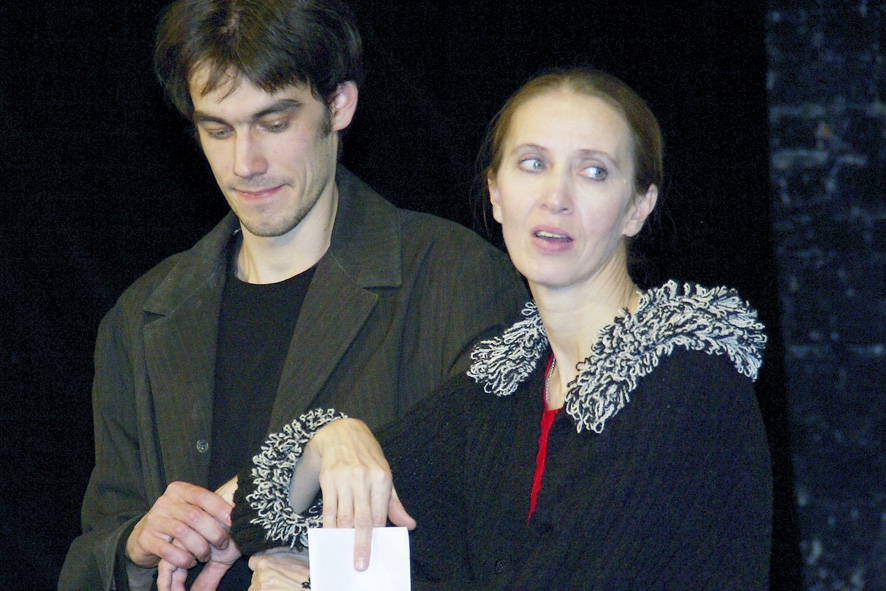 Лариса Соколова в роли Женщины в спектакле «Про мою маму и про меня» (с Валентином Ивановым).