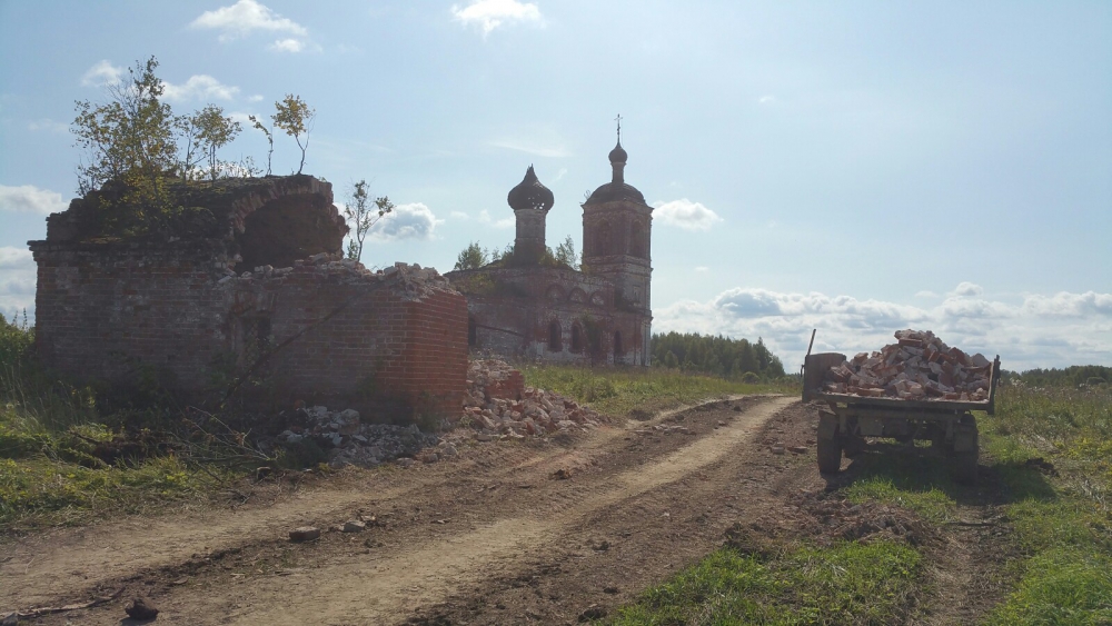 Краевед опасается, что вскоре у них дойдут руки и до самой церкви. Месяц назад, посещая это место с крестным ходом в честь 780-летия обретения иконы Феодоровской Божьей Матери и священномученика Николая Клементьева, он наблюдал, как вандалы собирались увезти от церкви тракторный прицеп с кирпичом, но, завидя крестный ход, ретировались. Оставленный прицеп с грузом Сергей сфотографировал.