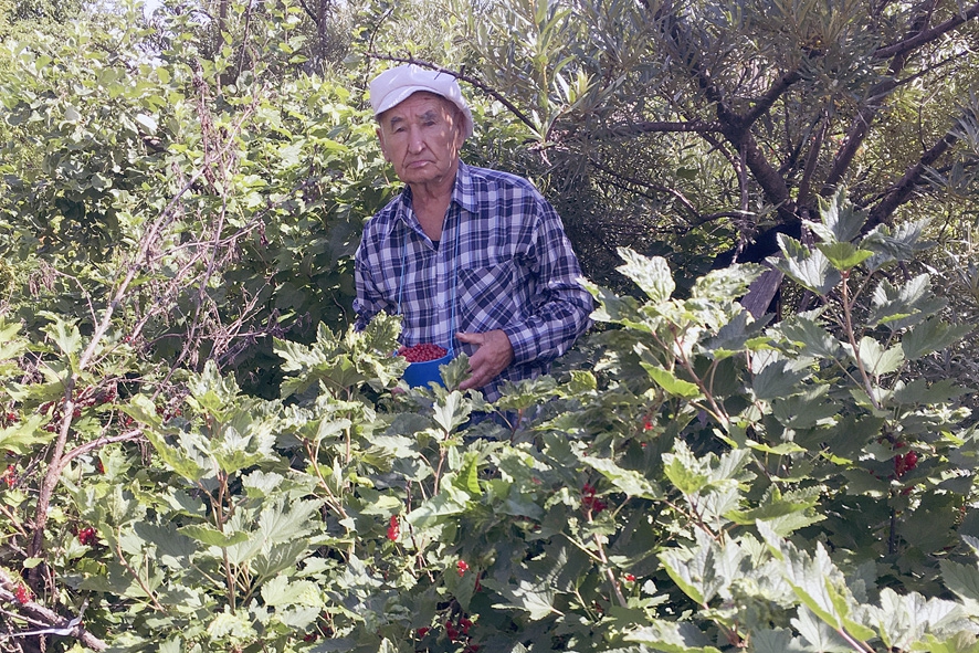 Наполеон Золин едва заметен в пышных кустах смородины. Урожай ягод в ненастное лето вырастил очень неплохой.