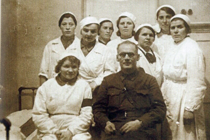 Медперсонал ивановского госпиталя № 3824 (бывшая школа № 46). Август 1941 года.