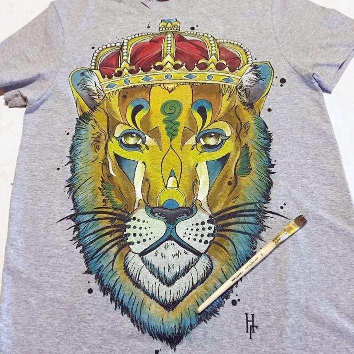 Шесть часов кропотливой работы – и царь зверей украшает футболку.