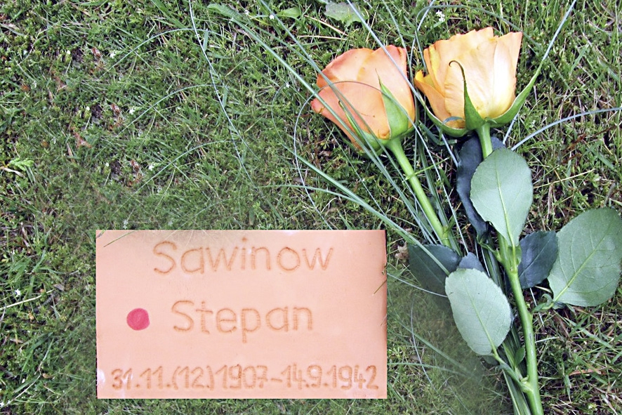 Глиняная табличка в память о прадеде на немецком мемориальном комплексе.