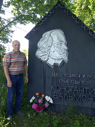 Правнучатый племянник поэта Михаил Бальмонт побывал в Гумнищах у памятного знака.