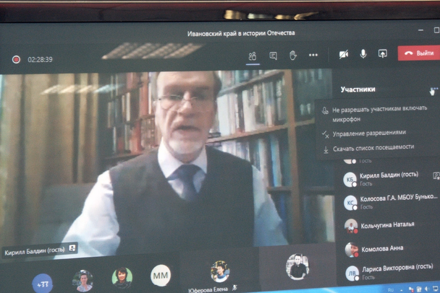 Выступление автора книги "Замечательные люди Ивановской области" Кирилла Балдина на видеоконференции.