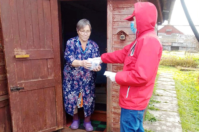 Пожилые люди от души благодарят волонтеров за внимание и заботу.