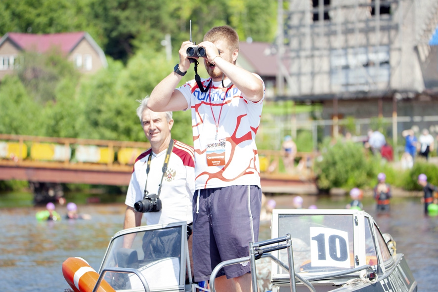 На протяжении всей дистанции рядом были спасатели на лодках.